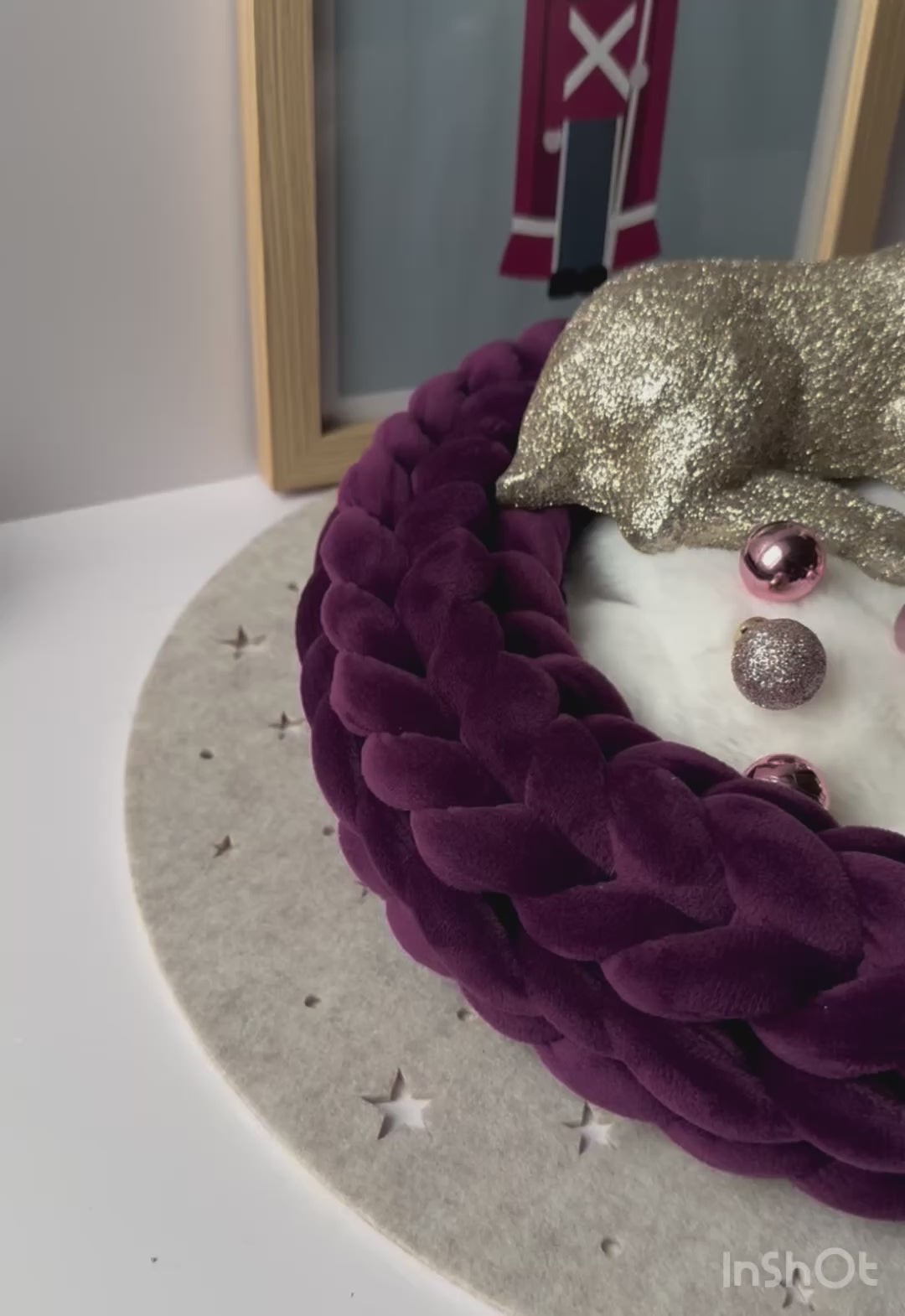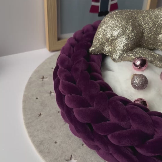 Handgefertigter Wollkranz aus Samt in Beere/Plum