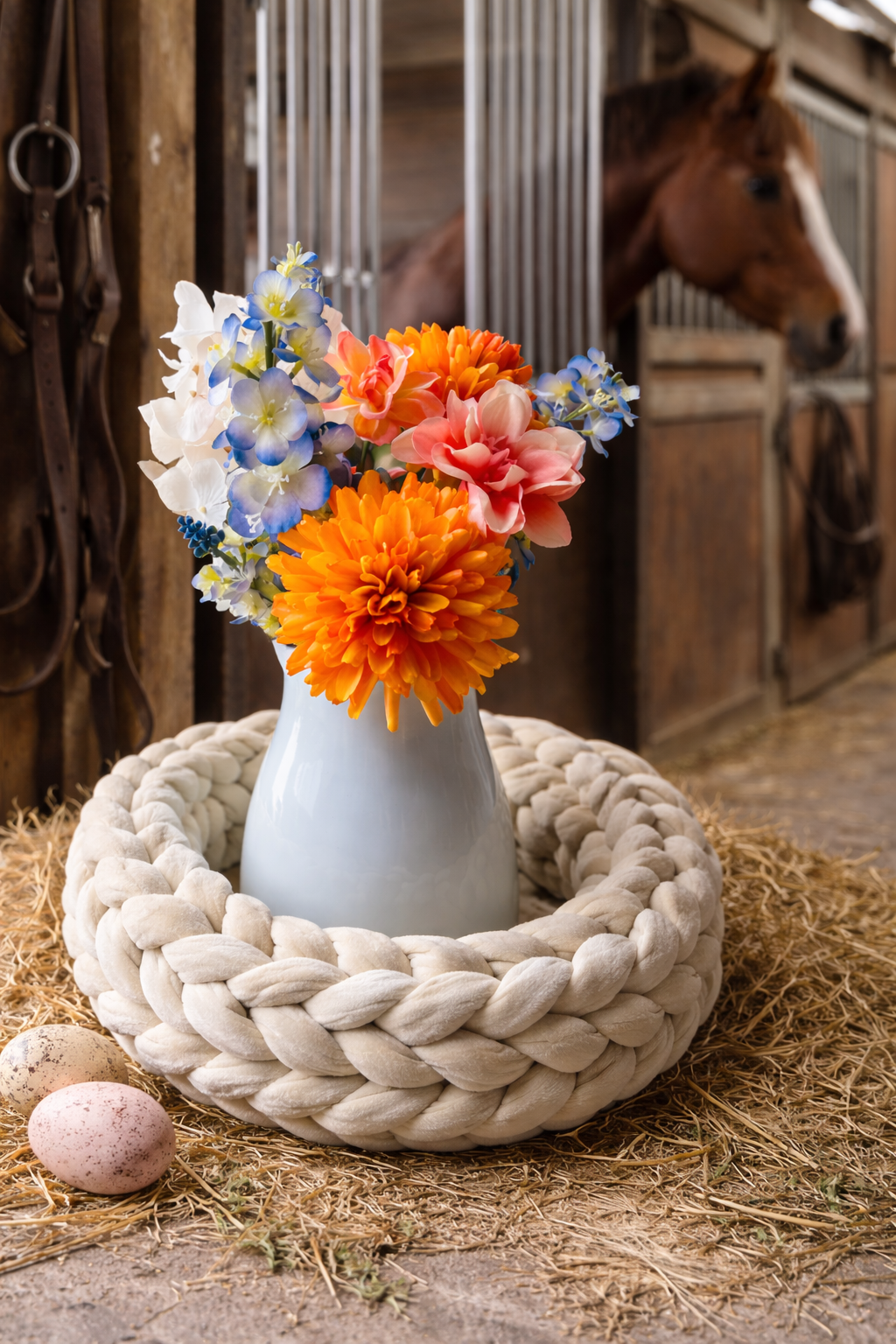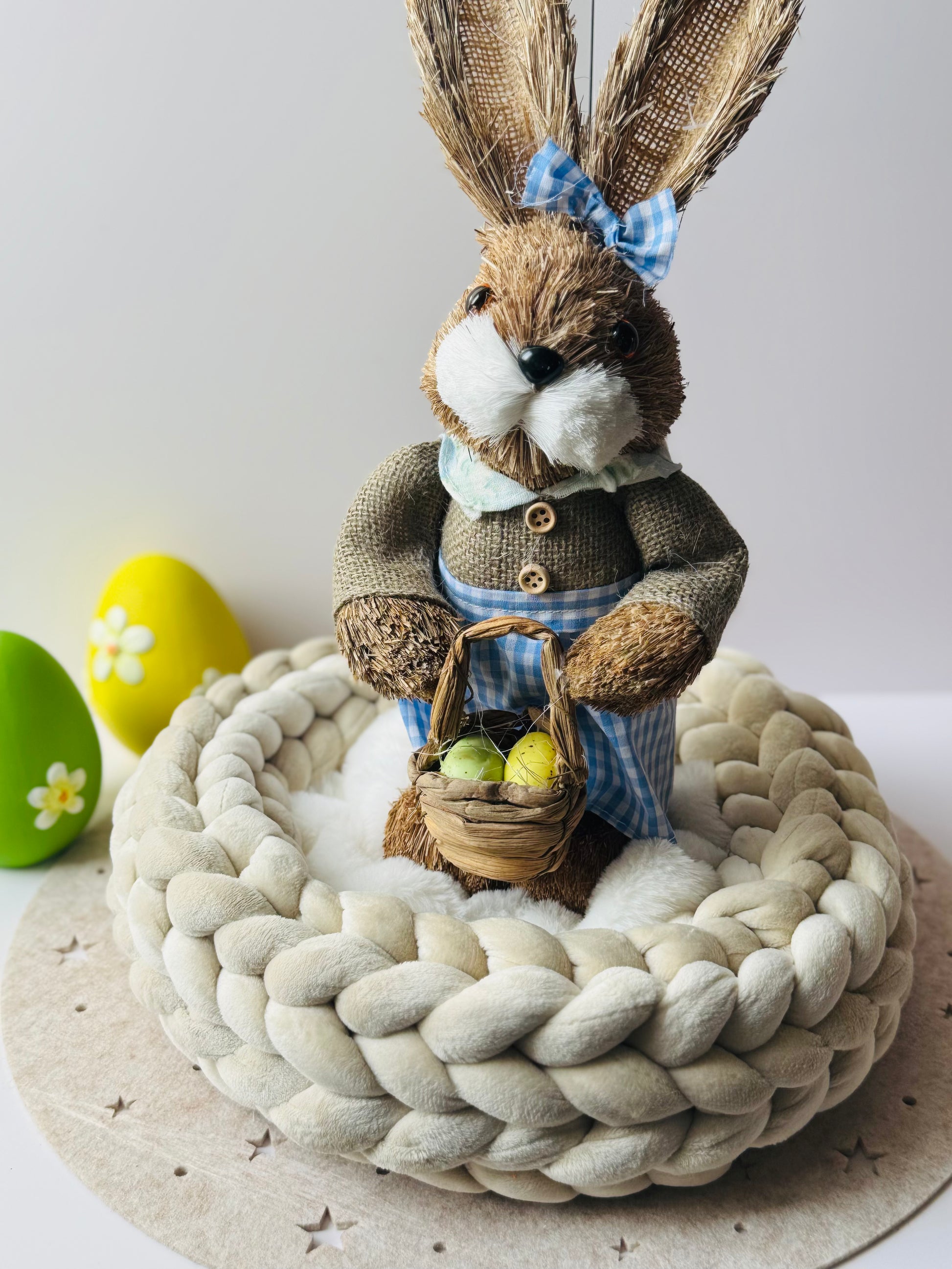 Frühling und Ostern: Mit Trockenblumen oder frischen Zweigen oder Ostereiern und schönen Osterhasen