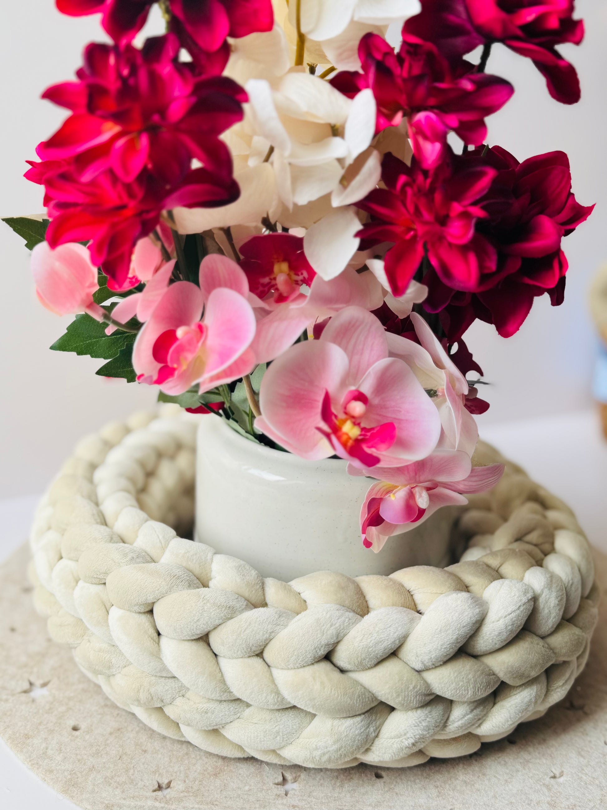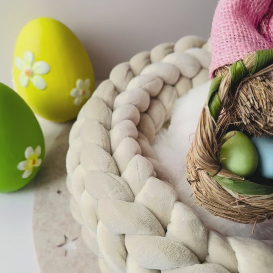 Handgefertigter Wollkranz aus Samt in Beige