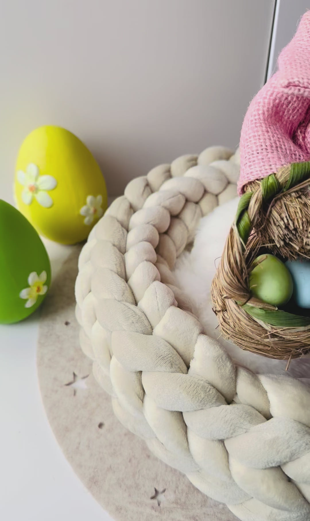 Dieser handgefertigte Samtkranz in Beige bringt Ruhe, Leichtigkeit und nordische Eleganz in dein Zuhause.