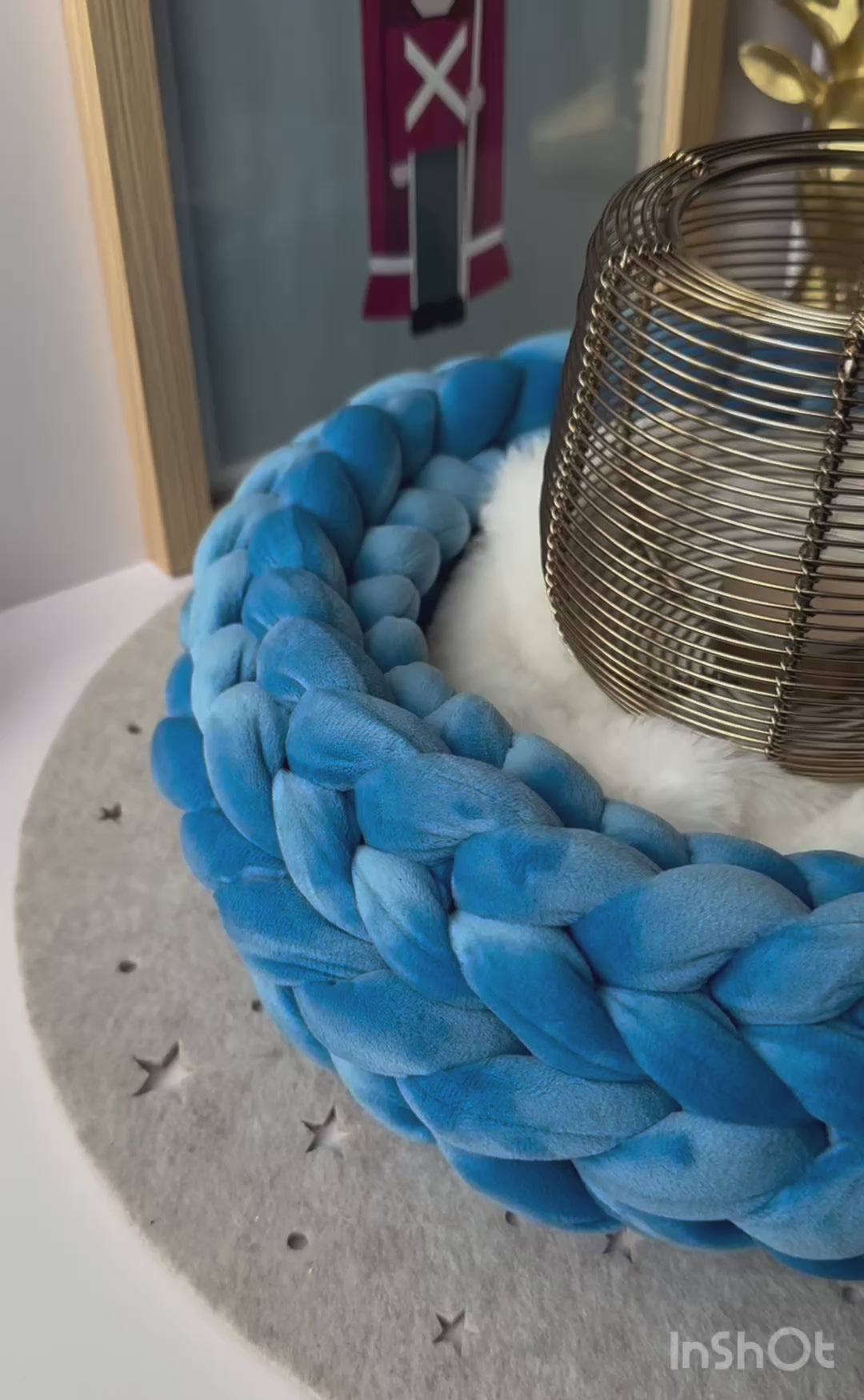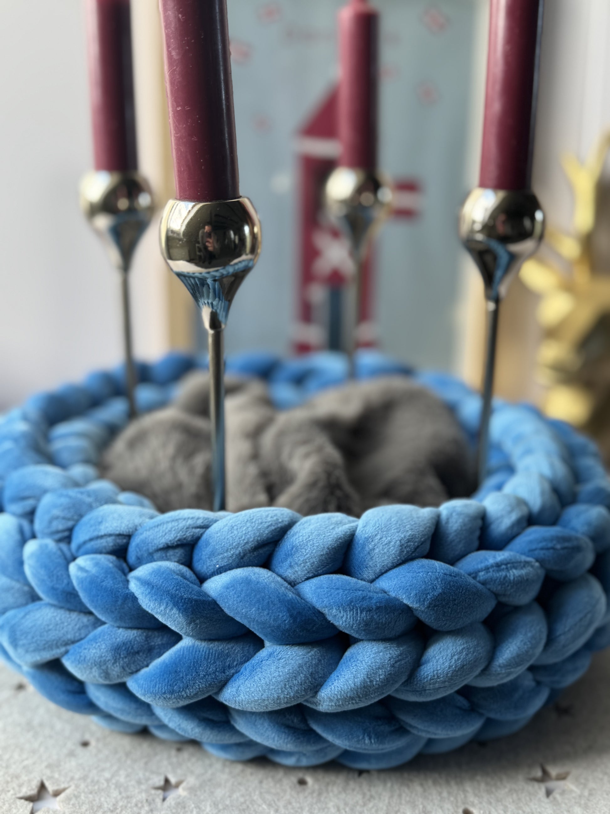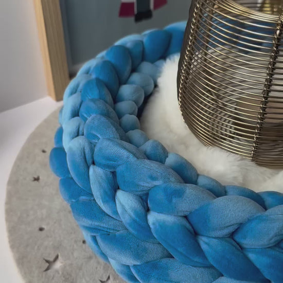 Handgefertigter Wollkranz aus Samt in Blau