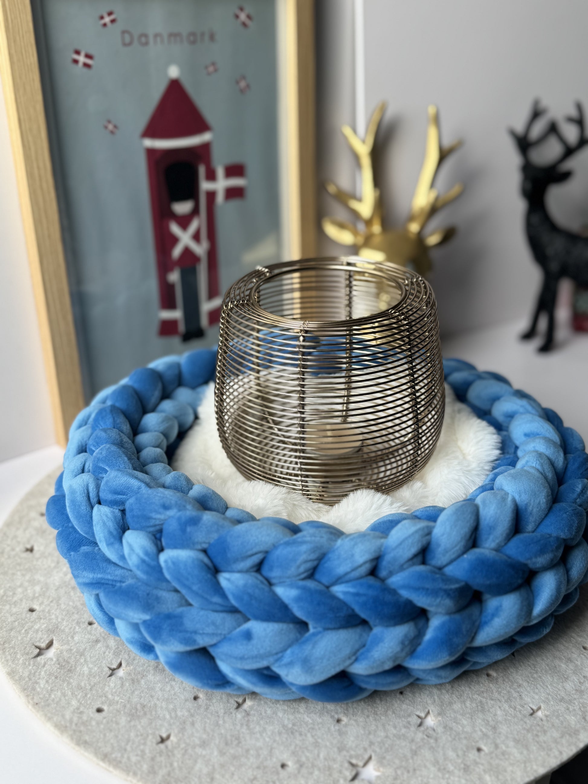 Dieser handgefertigte Samtkranz in Blau bringt Ruhe, Leichtigkeit und nordische Eleganz in dein Zuhause.
