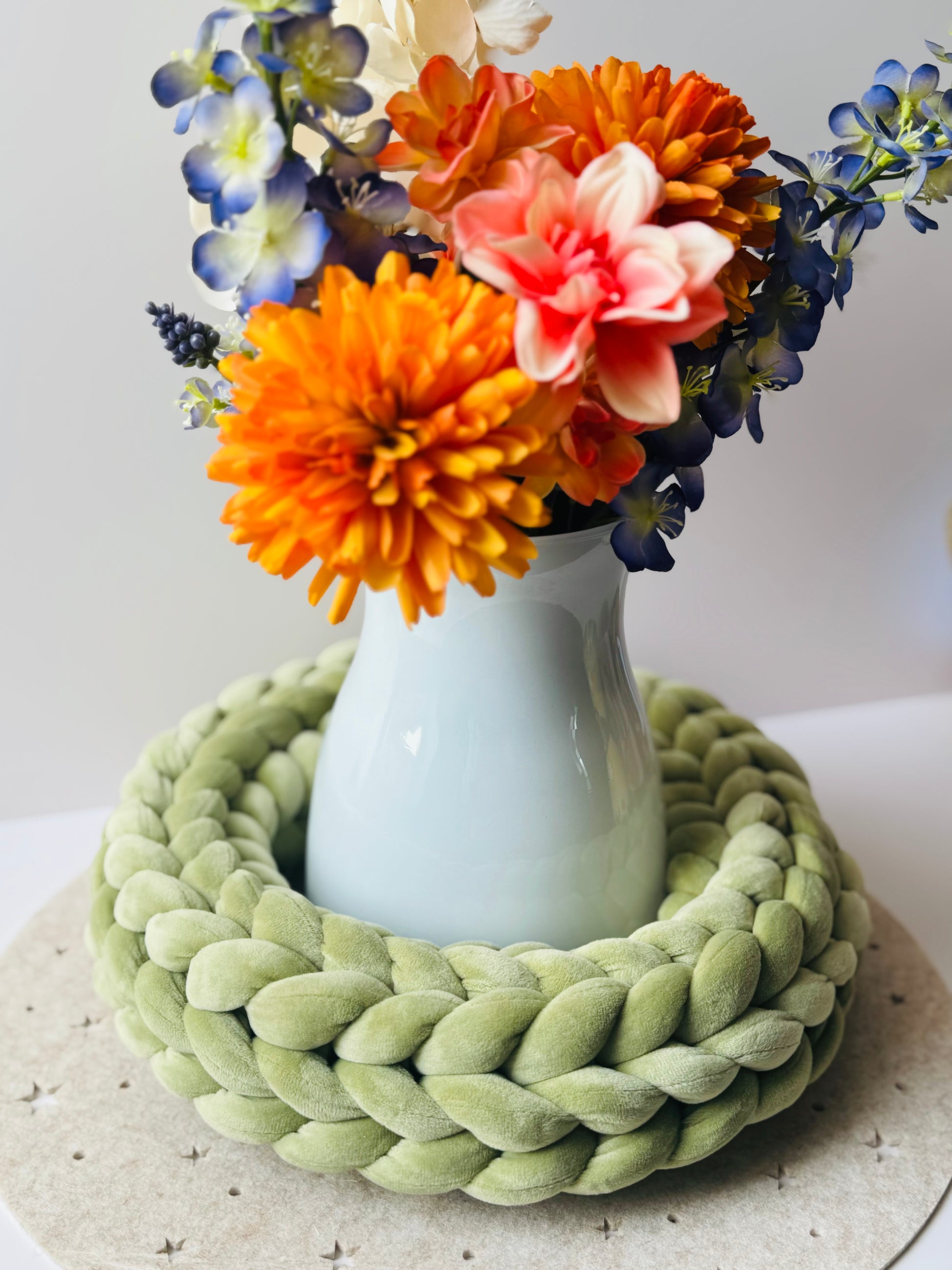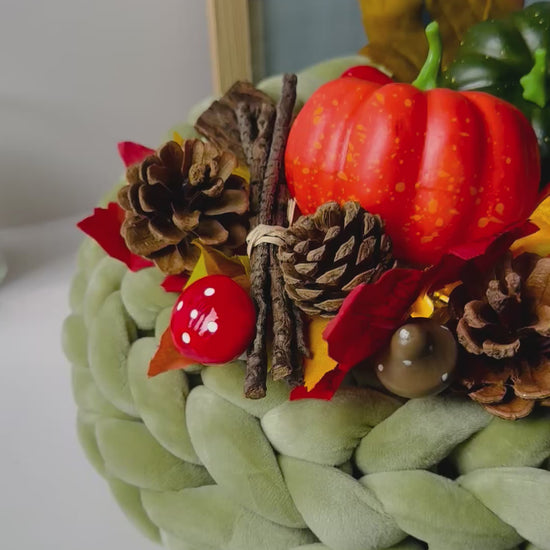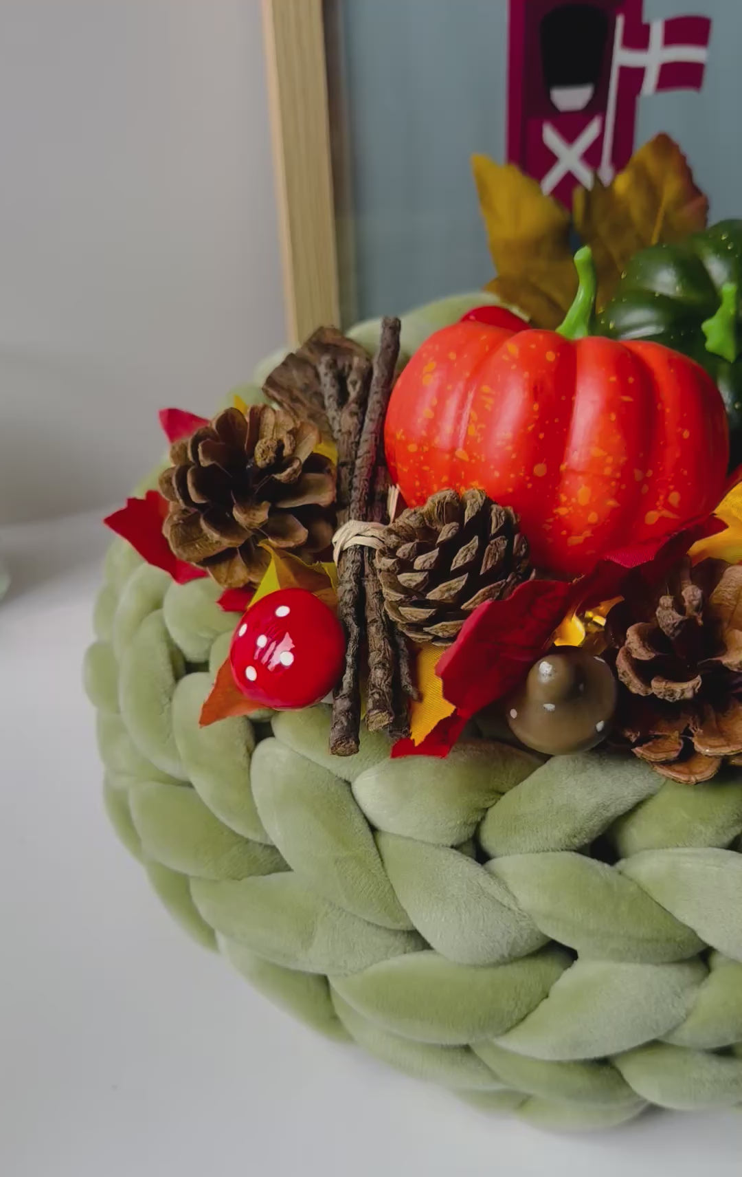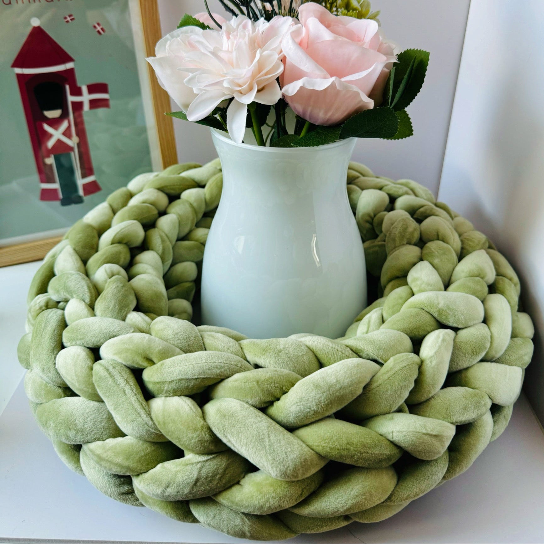 Handgefertigter Wollkranz aus Samt in Salbeigrün