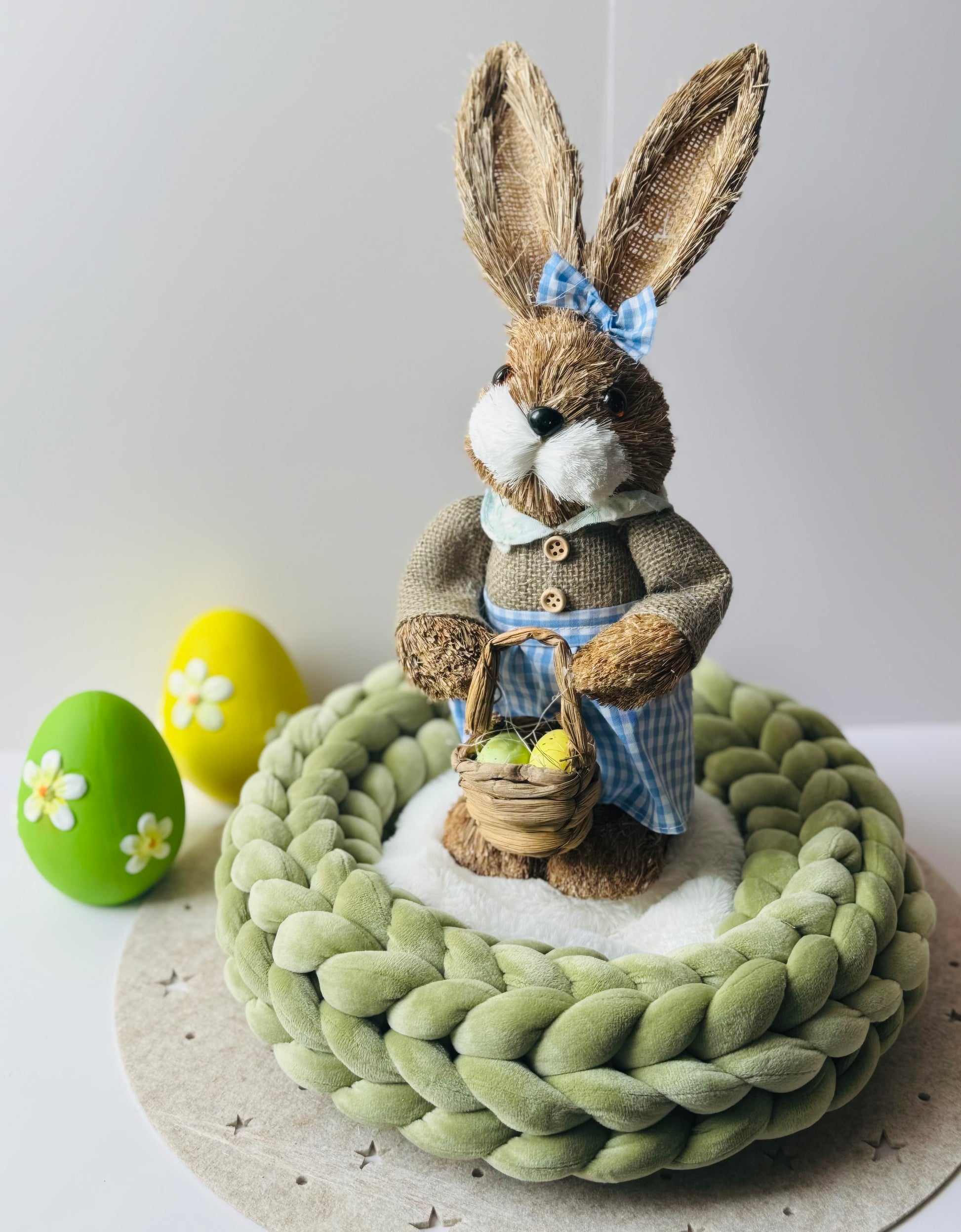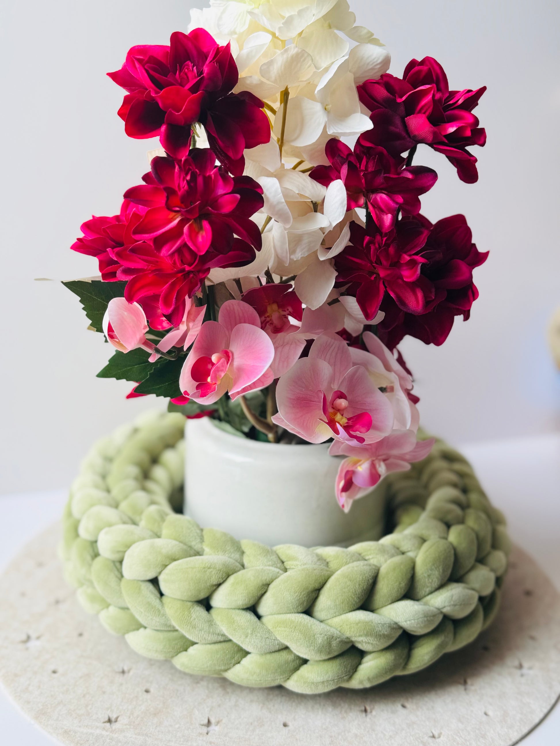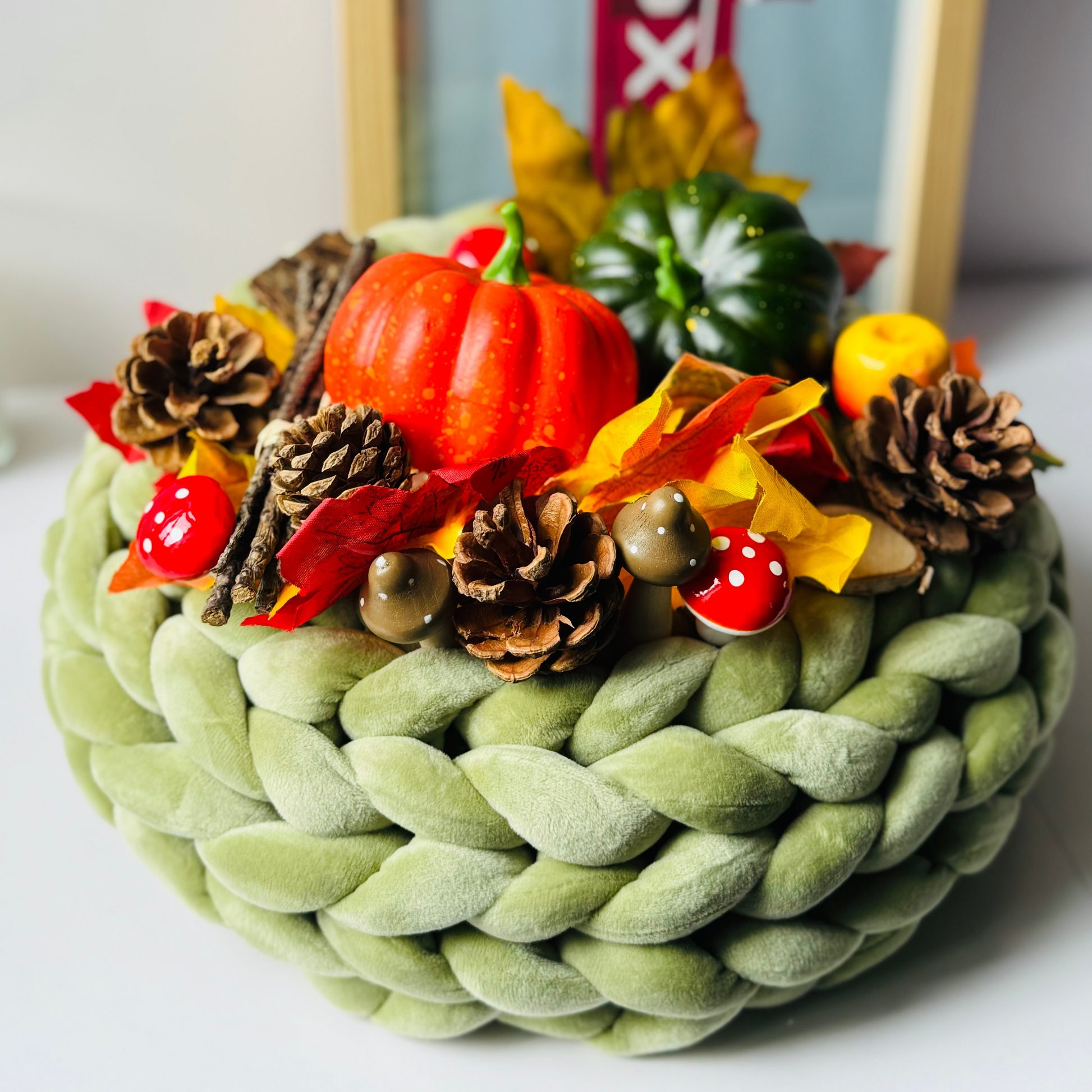 Handgefertigter Wollkranz aus Samt in Salbeigrün