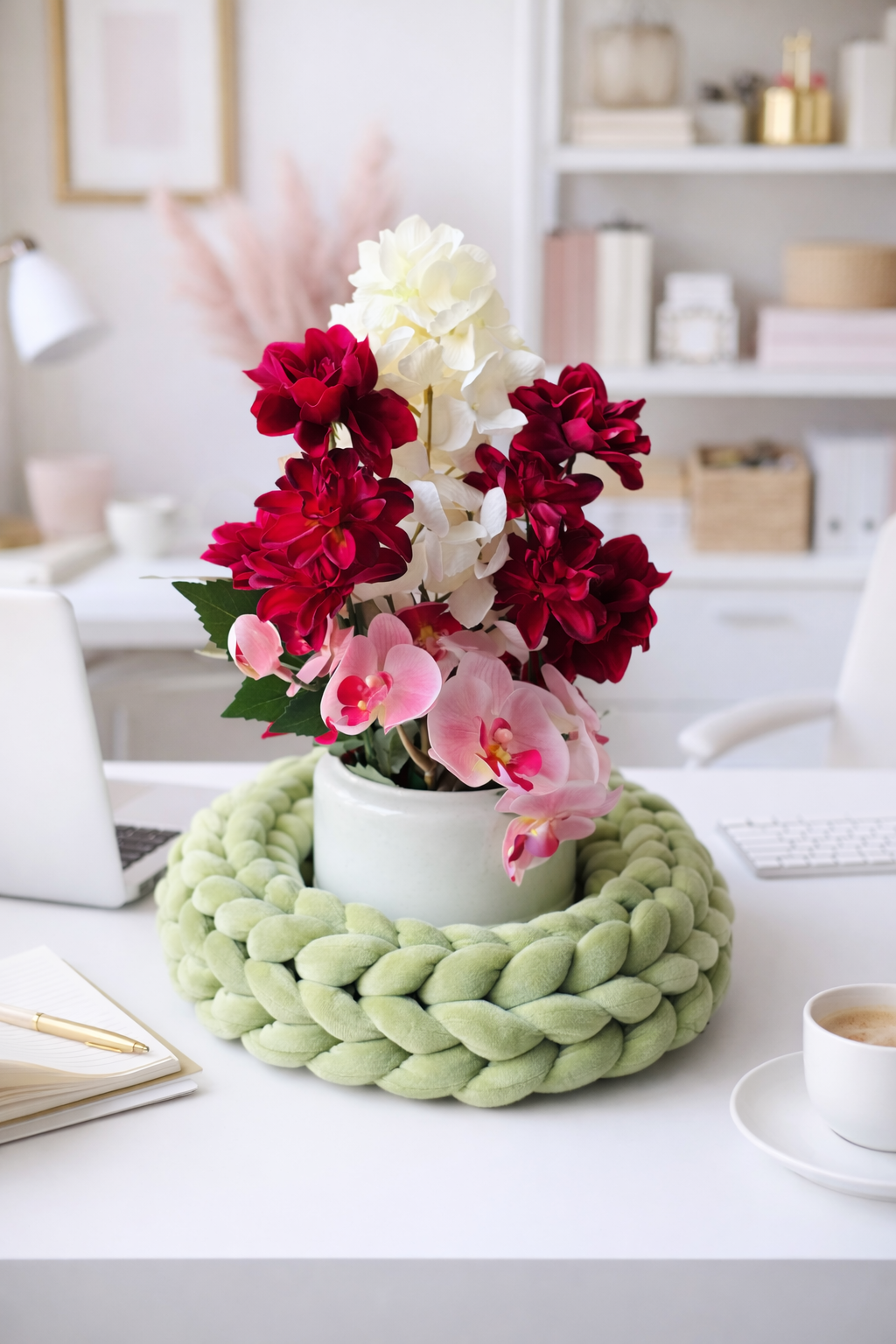 Das samtige Garn wirkt weich, hochwertig und modern – perfekt für minimalistische Einrichtungen, skandinavischen Stil oder natürliche Dekokonzepte.